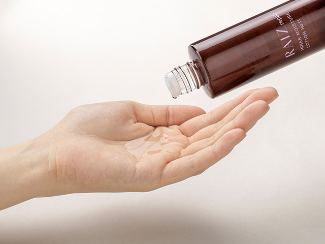ライースリペアインナーモイスチュアローションはセラミド生み出す力を高めるライスパワーNo.11を贅沢に配合した化粧水。有効成分ライスパワーNo.11が肌にとけこむように素早く肌の生まれる場所(基底層)にまでたっぷりと浸透し、セラミドを生み出し潤いが肌の内側から湧き上がってくるかのようなうるおいのみちたみずみずしい状態に導いてくれます。とろみのあるリッチなテクスチャーも相まって美容液を化粧水として使っているかのような贅沢さです。